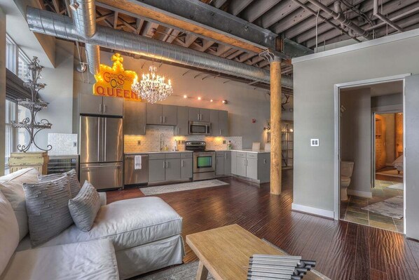 This apartment offers a fantastic location, putting you a short five-minute walk from Broadway and Ryman Auditorium. Apartments feature kitchens and patios.