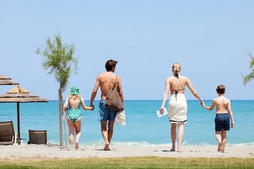 This all-inclusive hotel sits right on a sandy beach. Beach towels, umbrellas, and loungers await holidaymakers. Play volleyball or sip drinks at the beach bar.