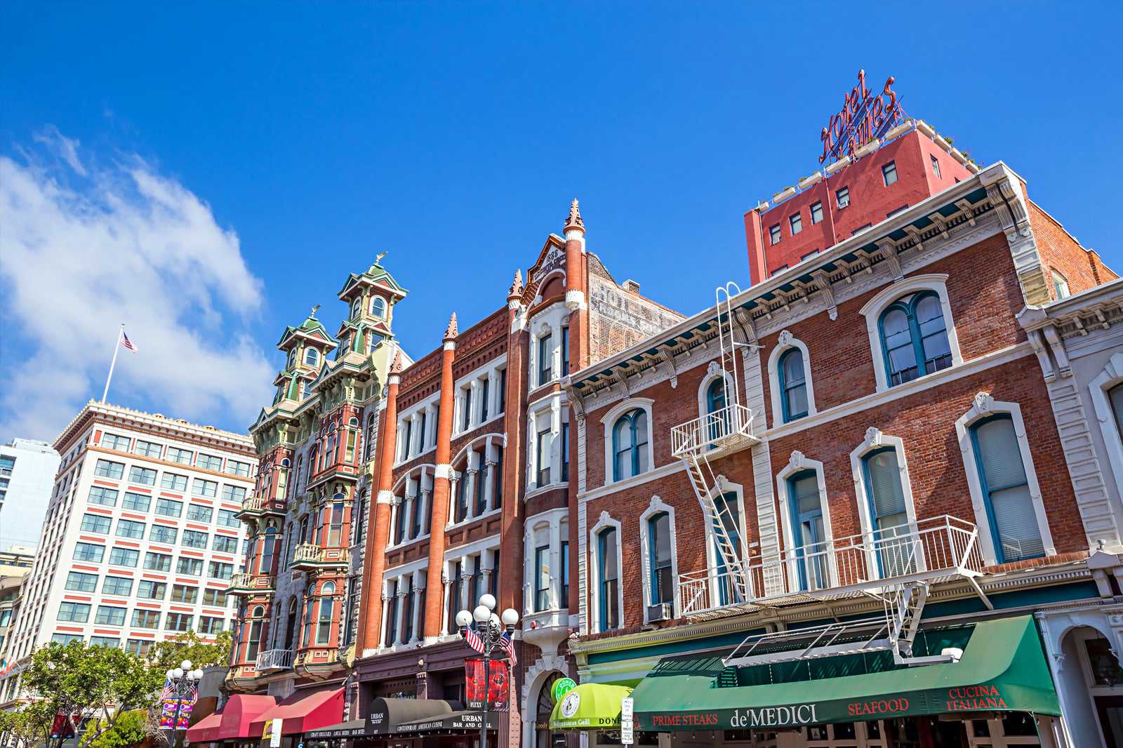When you enter the Gaslamp Quarter, the 1st thing you’ll notice is the timeless architectural treasures. Many of San Diego’s most beautiful buildings reside here and combine several classical architectural styles. Some of the highlights include Old City Hall, the Keating Hotel, the Spencer-Ogden Building, and the Louis Bank of Commerce. Walk inside many of these gorgeous structures, and you’ll discover they now operate as museums, restaurants, or bars. But the Gaslamp Quarter’s pioneering spirit still thrives, and modern skyscrapers bolster its architectural diversity.