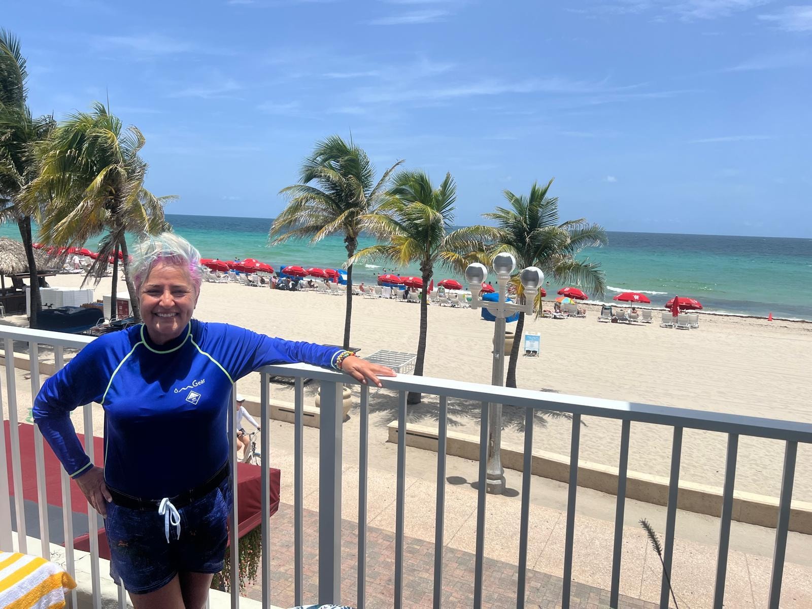 Unit was accommodating and functional. Staff was easy to contact and responded quickly. Fantastic beach view from the room with an outside veranda for sitting and enjoying the site of the ocean and broadwalk. Just steps of away from beach and broadwalk. Yes at Hollywood Beach it is called a "Broadwalk". Many shops, restaurants and sitting areas along the broadwalk. The broadwalk provides for walking, jogging, rollerblading and bicycling. Area is kept clean. Plenty of to do especially if you are and active person.