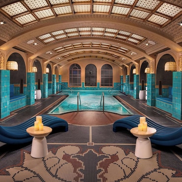 Cool off in the seasonal outdoor pool surrounded by cabanas, loungers, and umbrellas. Grab a drink at the poolside bar or dine at the on-site restaurant.