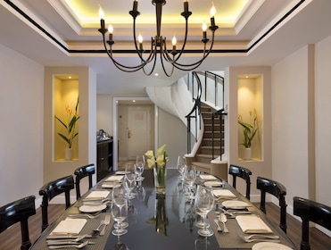 In-room massages and turndown service pamper hotel guests. A minibar and 24-hour room service complete the luxurious experience.