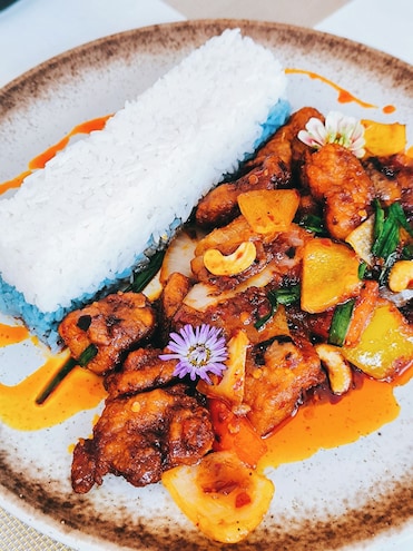 อาหารนานาชาติริมสระว่ายน้ำรอคุณอยู่ที่ห้องอาหารของโรงแรมแห่งนี้ ตัวเลือกได้แก่ อาหารมังสวิรัติ อาหารท้องถิ่น และออร์แกนิก ควบคู่ไปกับอาหารเช้าแบบมังสวิรัติ