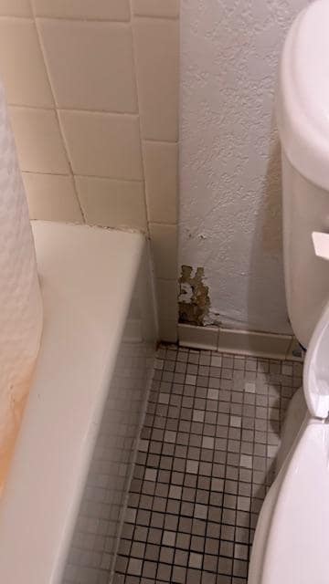 There was mold every where in the bathroom. It appeared as if they tried to paint over it. There was yellow liquid dripping down on the walls in our room as well as the hallway.