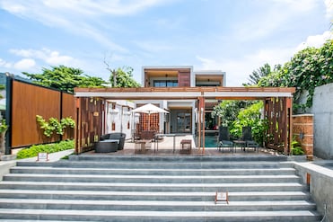 ดื่มด่ำไปกับทัศนียภาพชายฝั่งจากระเบียงบนดาดฟ้าที่รีสอร์ทบูติกแห่งนี้ กำแพงต้นไม้มีชีวิตประดับสวนสร้างบรรยากาศอันเงียบสงบตามธรรมชาติ