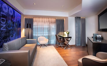 The hotel rooms boast hypo-allergenic bedding for a peaceful night's rest. Midnight cravings are satisfied with 24-hour room service and a well-stocked minibar.