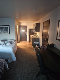 Truly enjoyed our 5 day stay. First time staying at one of these types of hotels. Was nice to have a kitchen with a full size fridge. Ben was very comfortable and the fact that I had a recliner really put the room over the top. The cost was very reasonable for all the amenities.