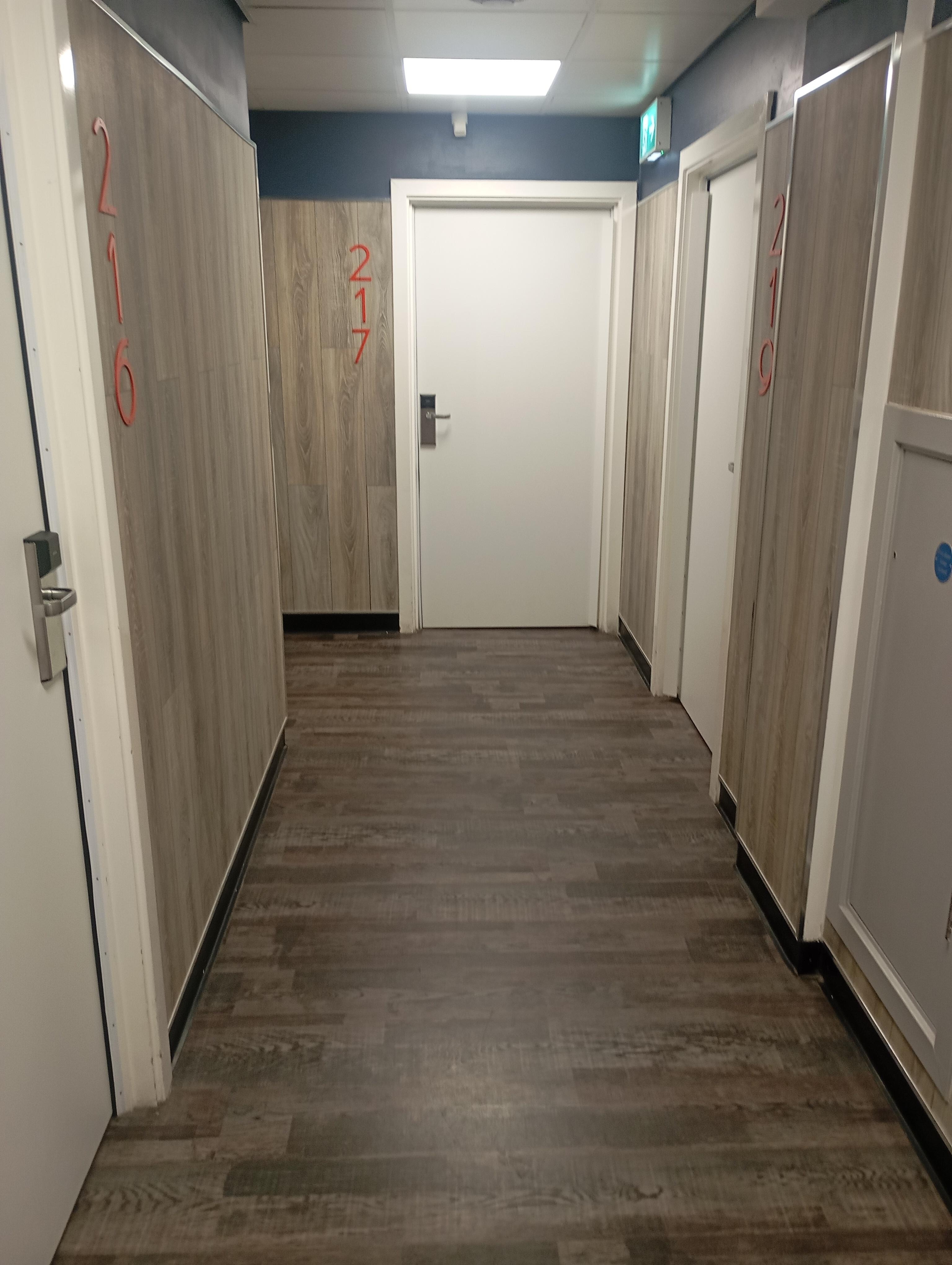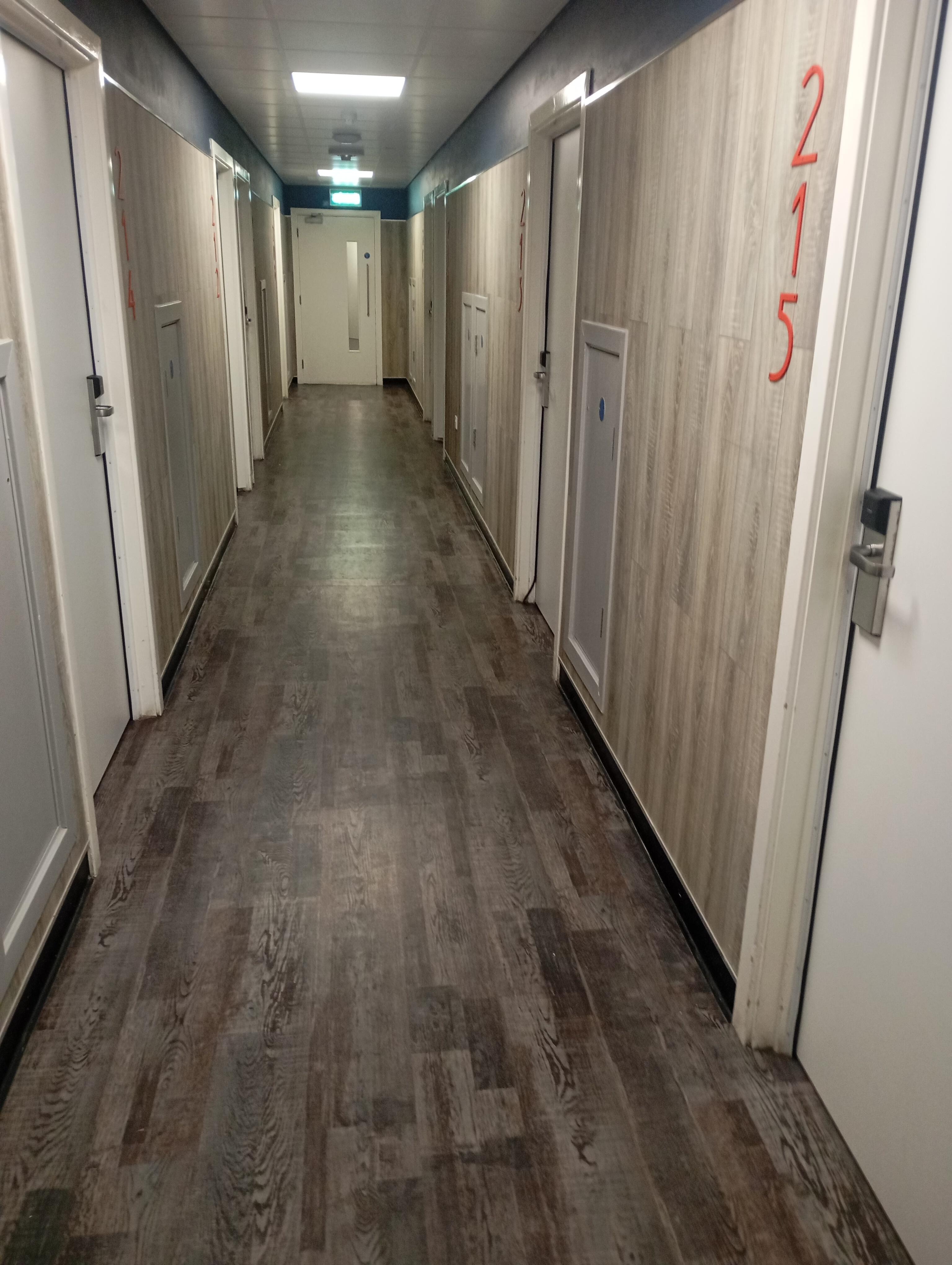 Friendly staff. Clean room - simple but functional. Good separate small bathroom. Plugs didn’t work though - not ideal for charging phone. Free tea and coffee in common area is a lovely touch.
