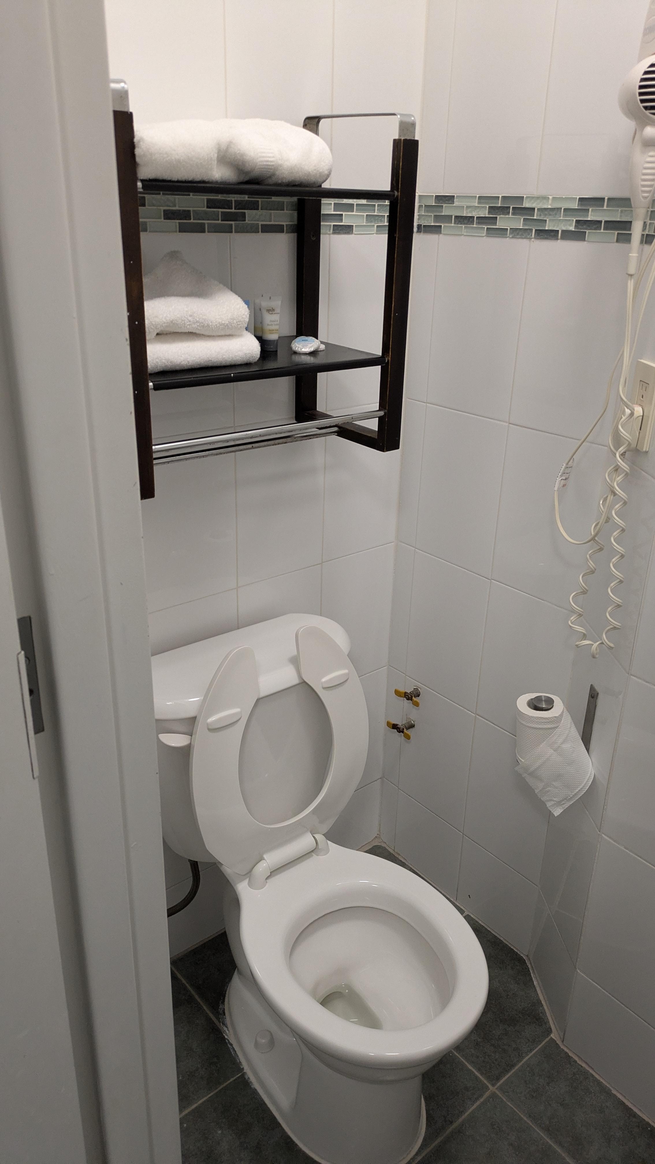 The room was cold. The heating system was not working. The TV did not work. The shower leaked all over the bathroom floor and dripped all night. The stopper in the back of the toilet didn’t seal properly preventing the toilet from filling. I had to jiggle it to get it to seat properly after each flush.