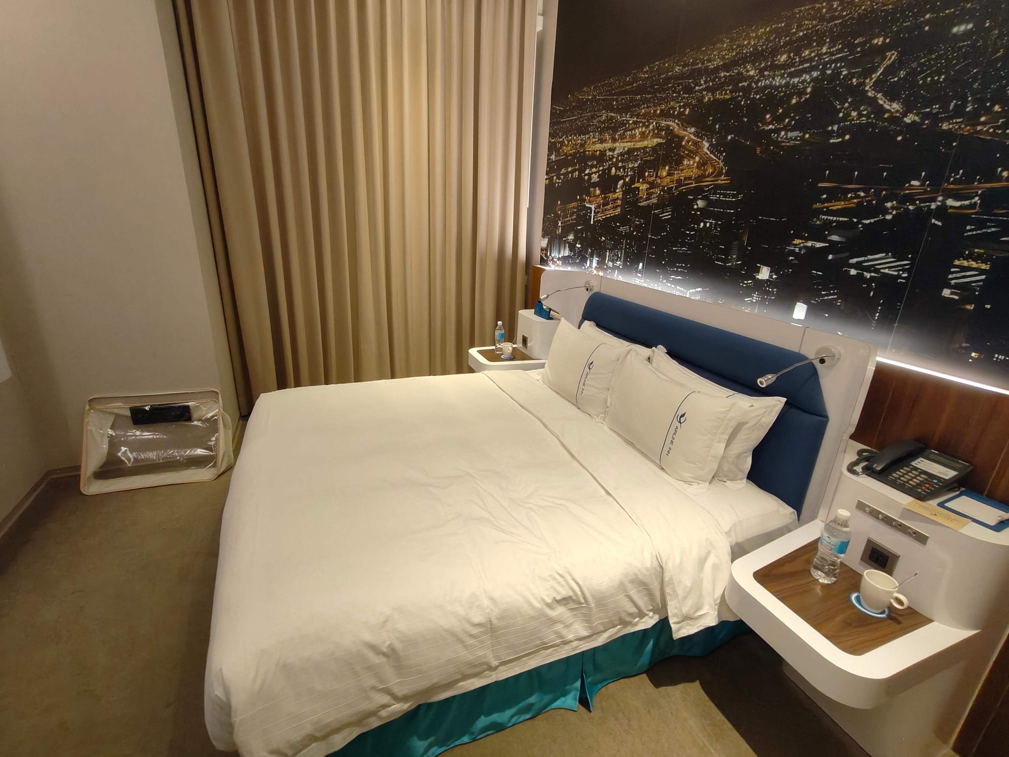 飯店很大,房間也大,我們睡雙床房,因為一個棉被會影響到睡眠,有要求多一個棉被,進房前就放在房間了,我們房間在3樓,早餐OK,拿鐵機是真牛奶