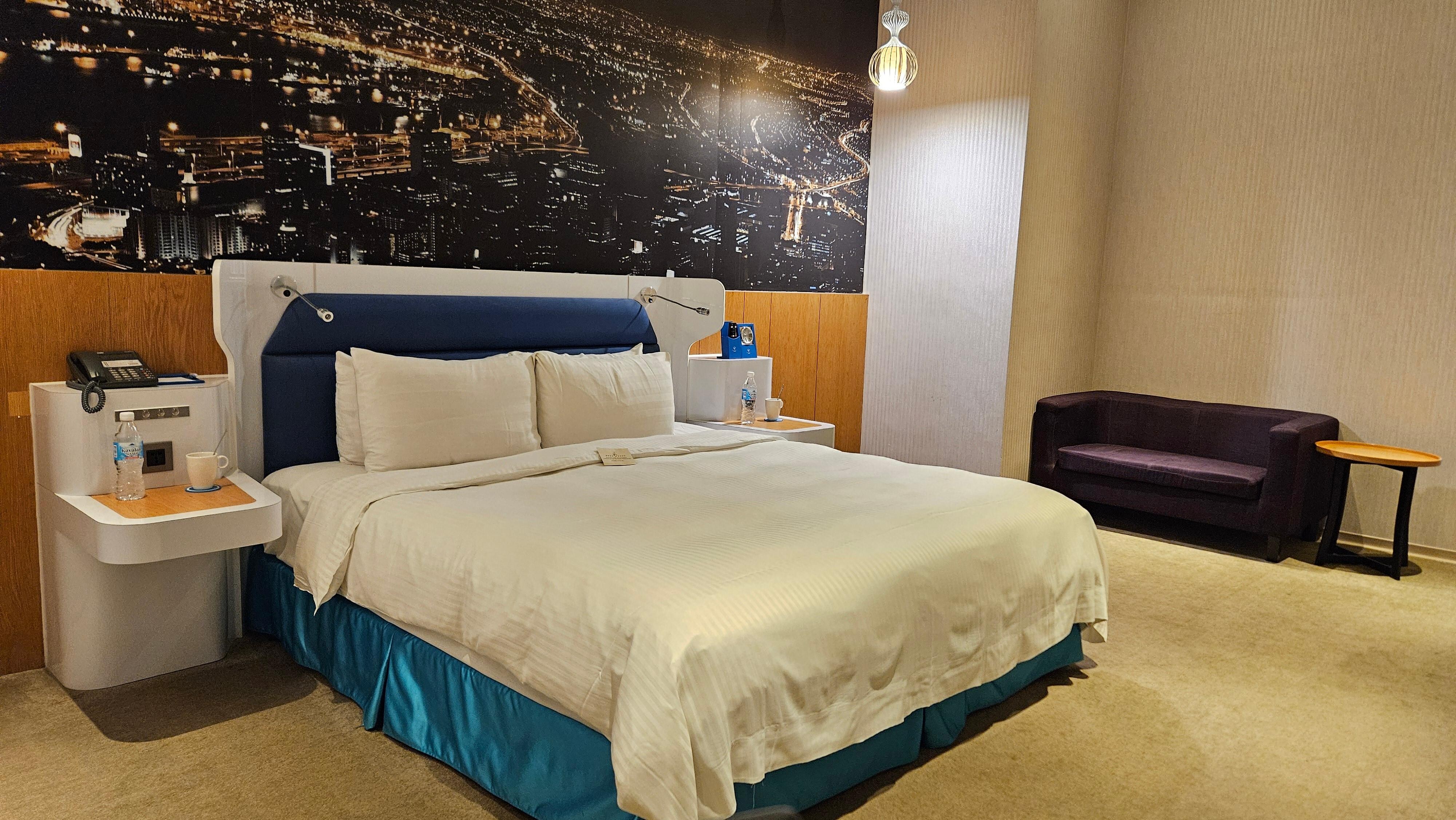 客房整體乾淨 空間大,附近飲食方便,唯房間內煙味重,希望後續能改善