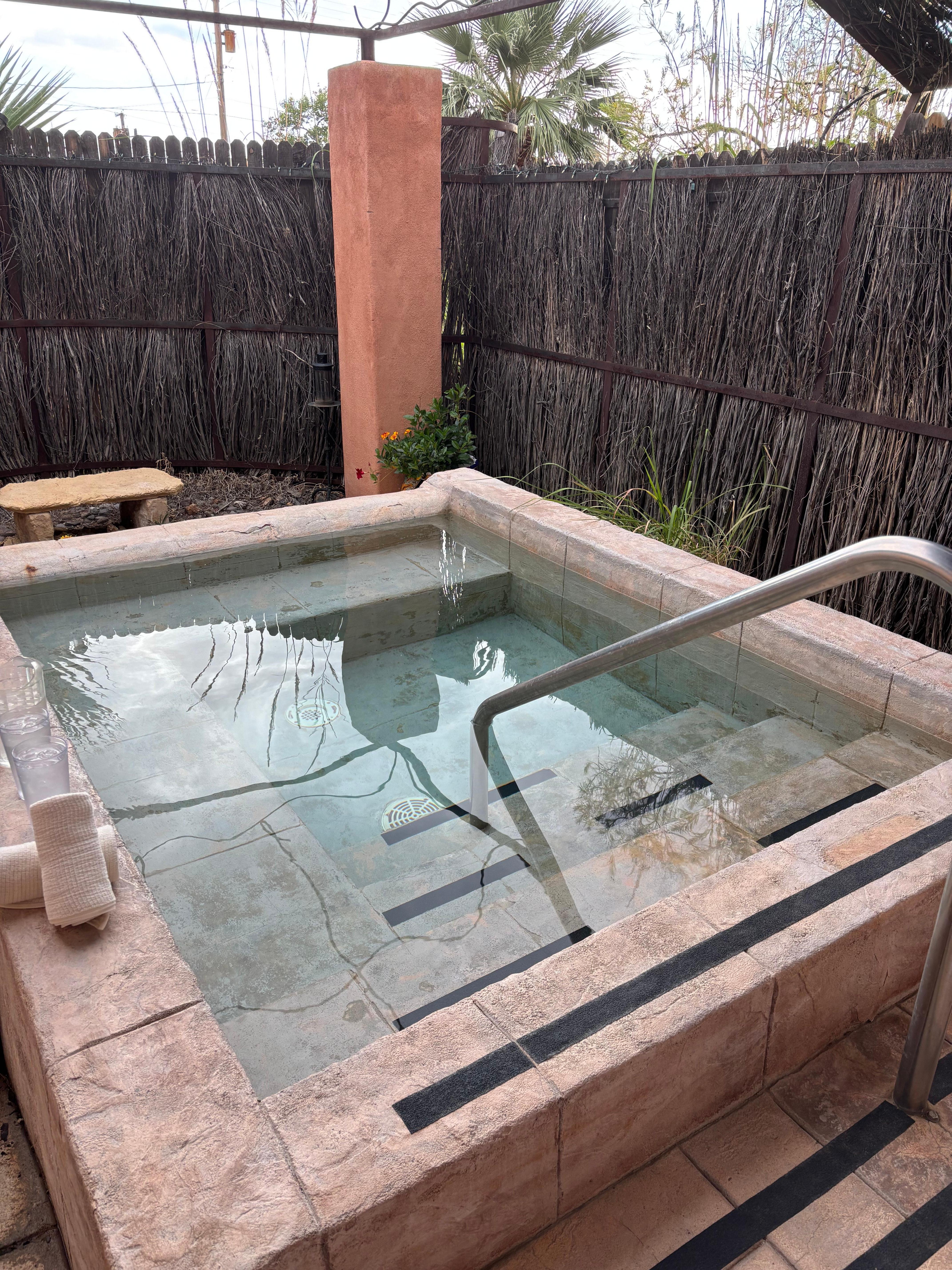 There are 3 indoor hot springs and outdoor hot springs open between 7:00 AM and 11:00 PM. The temperature in the hot springs is set to 104°F.