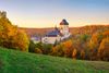 Karlštejn Castle (Hrad Karlštejn) is a stunning Gothic landmark situated 30 km southwest of Prague. The construction of the complex started in 1348, directed by Holy Roman Emperor Charles IV. This resulted in a towering hilltop fortress featuring views of the Berounka River and surrounding countryside. This wonderfully preserved castle is ideal for an adventurous road trip near Prague.